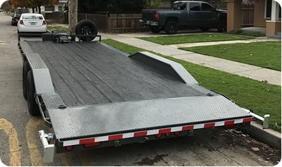The Open Deck Tandem Axle Car Hauler provides a dependable solution for transporting standard passenger vehicles. The trailer features a tandem axle setup rated for 7,000 pounds, providing stable towing and highway performance. An open-deck design helps reduce overall trailer weight, making it easier for compatible tow vehicles to handle the load. This setup works well for routine vehicle transport where reliability and straightforward loading matter. Each trailer rental includes ramps and straps to support safe loading and secure tie-down. Customers rely on this option when they need a practical, road-ready car hauler for everyday vehicle transportation.